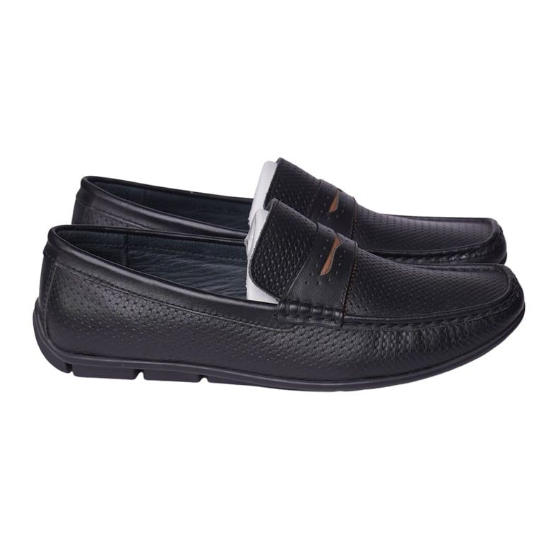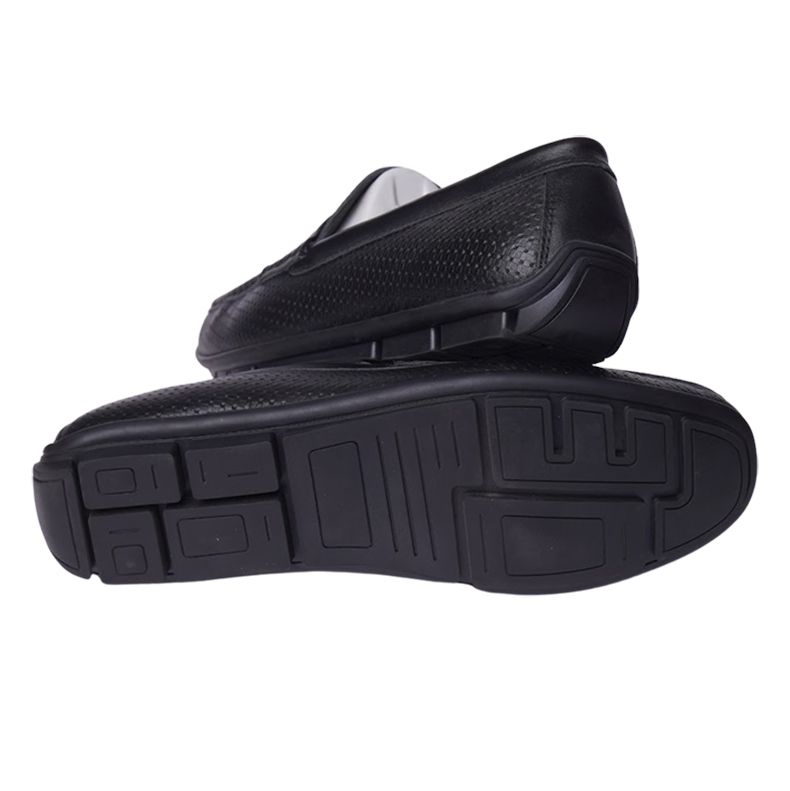 Giày lười da công sở dáng kẻ ô vuông có nơ- Đen