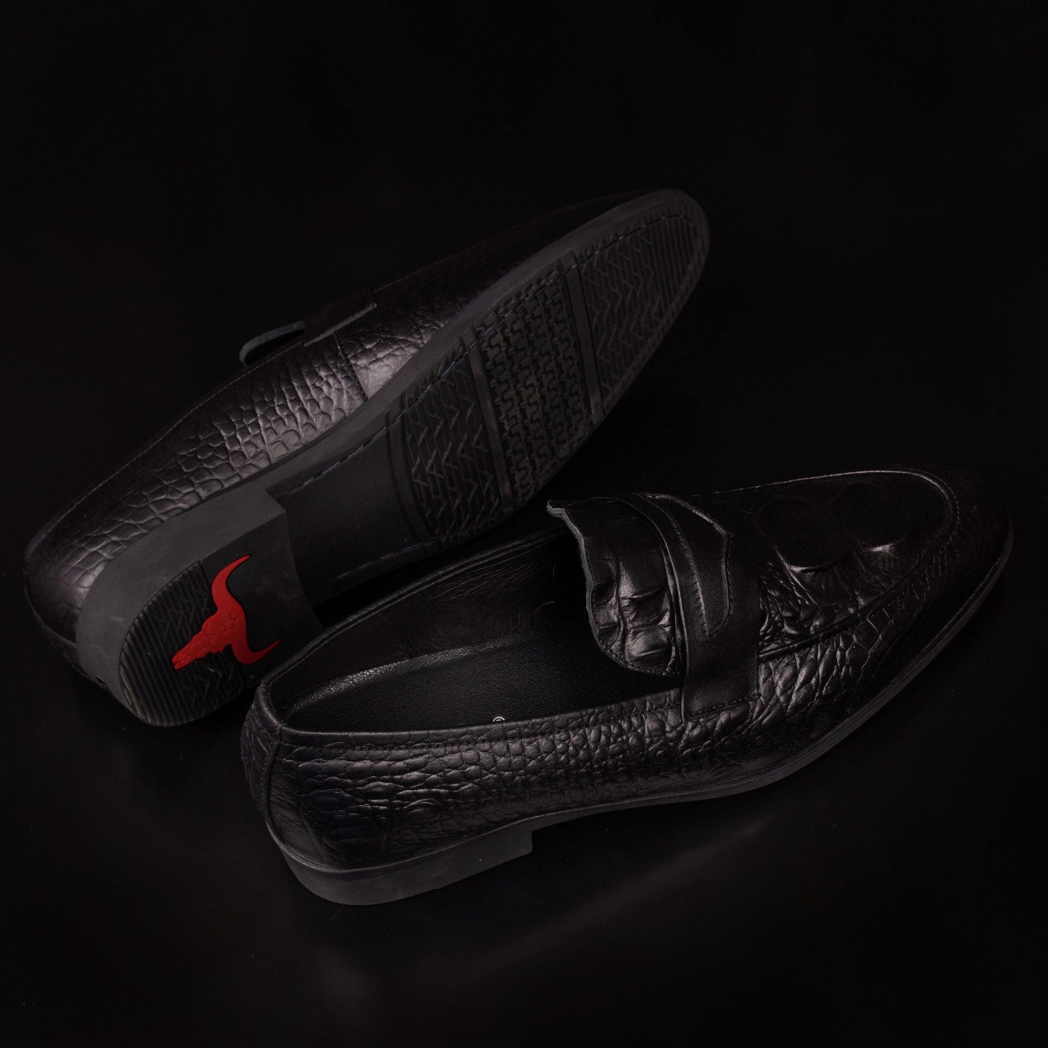 Giày Clark lười da Băng thủng vân cá sấu - Đen
