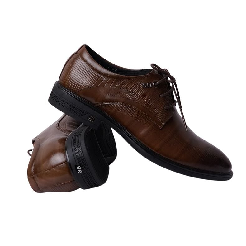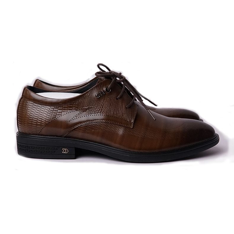 Giày da buộc dây công sở cao cấp khâu đế êm mềm- Nâu pha