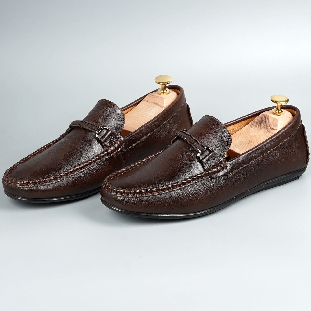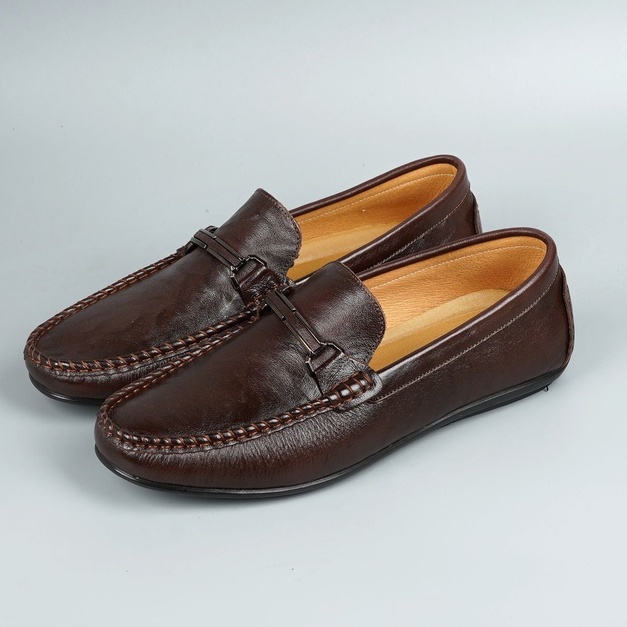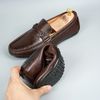Giày lười da bò khóa sắt khâu đế - Nâu