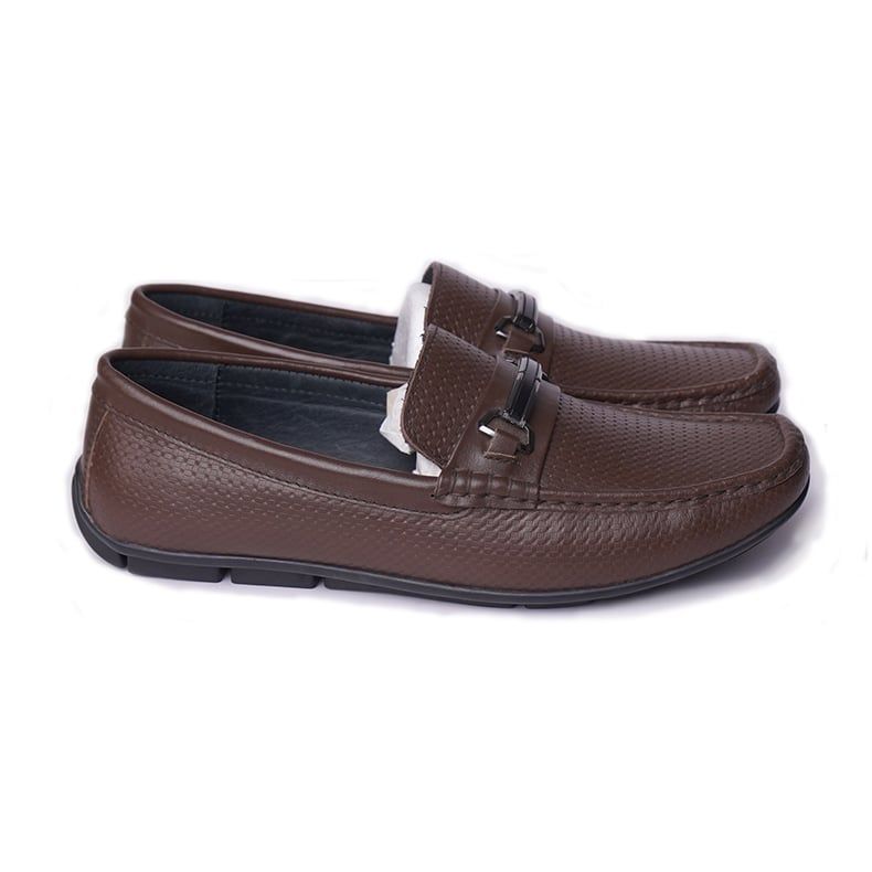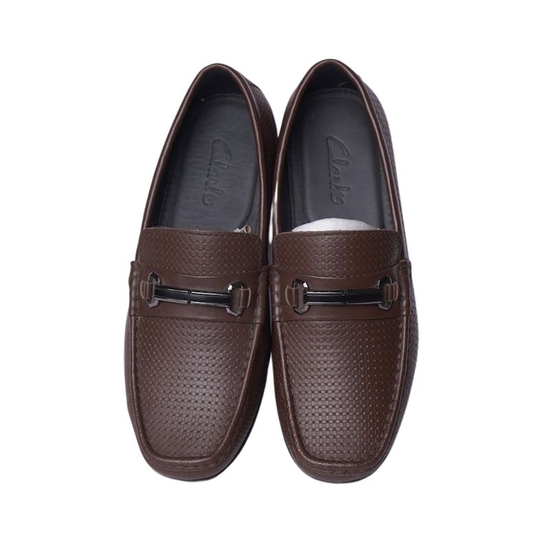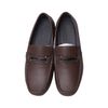 Giày lười da công sở dáng kẻ ô vuông có đai ngang - Nâu