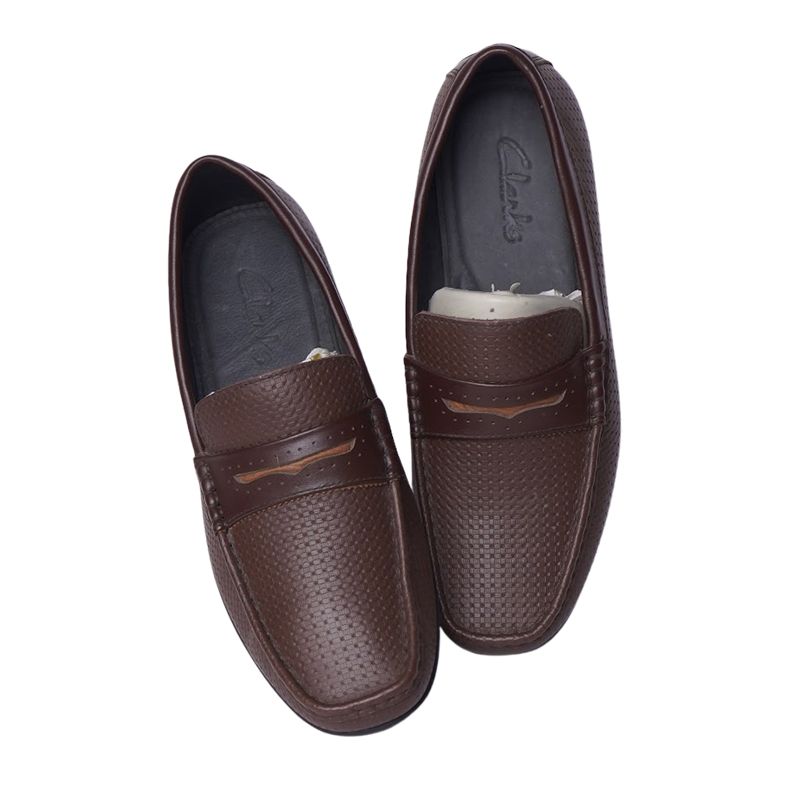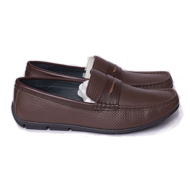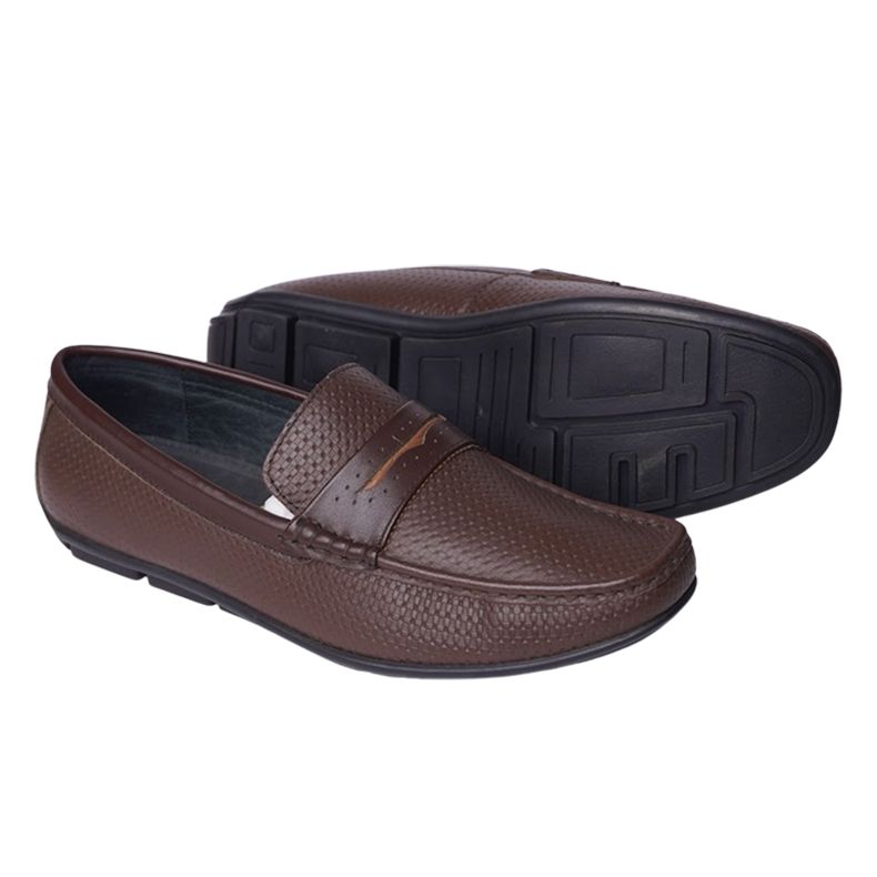 Giày lười da công sở dáng kẻ ô vuông có nơ- Nâu