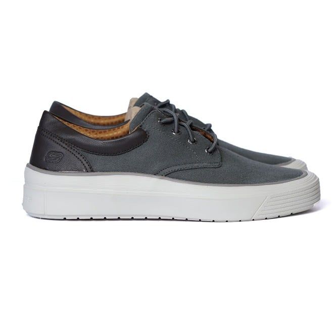 Giày Skeche.r.s dây buộc đế bằng Ghi gót đen - 200216