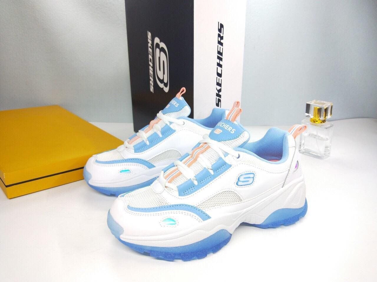 Giày Skech.e.r.s thể thao nữ đế cao mới- Trắng viền nước biển
