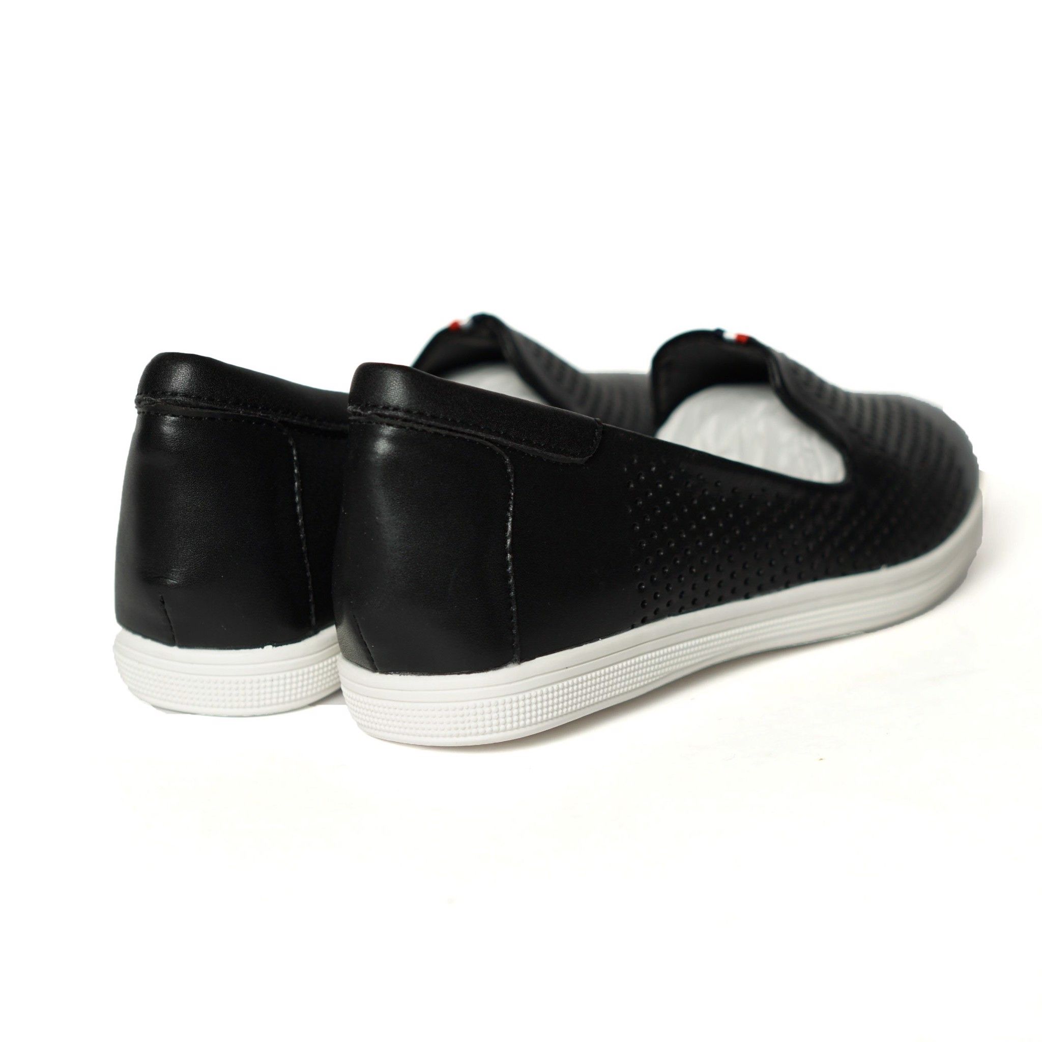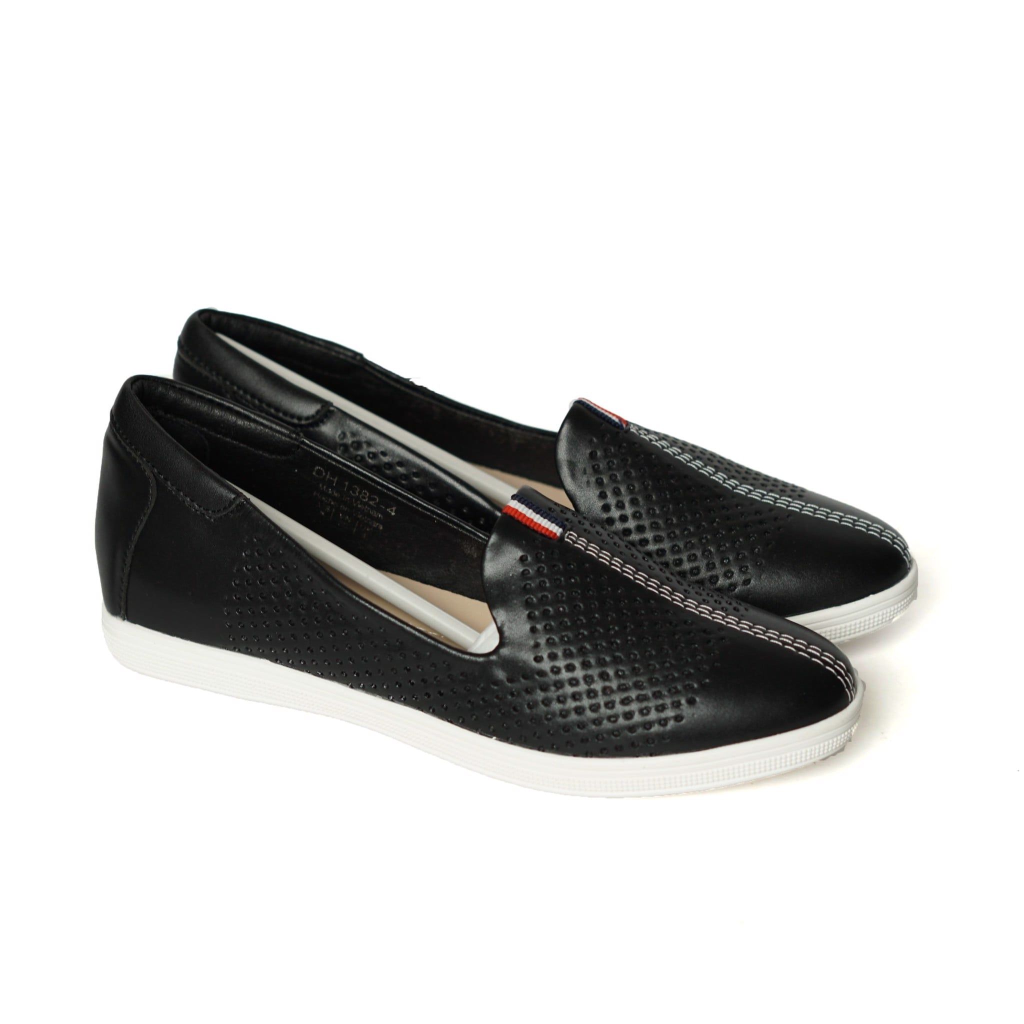 Giày Slipon da siêu êm Geox Đen viền chỉ Trắng