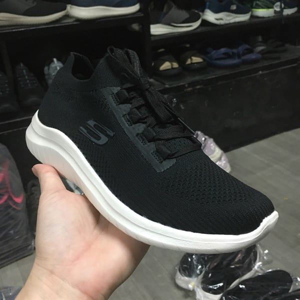 Giày thể thao nữ Skech cổ chun dây giả- Đen đế trắng