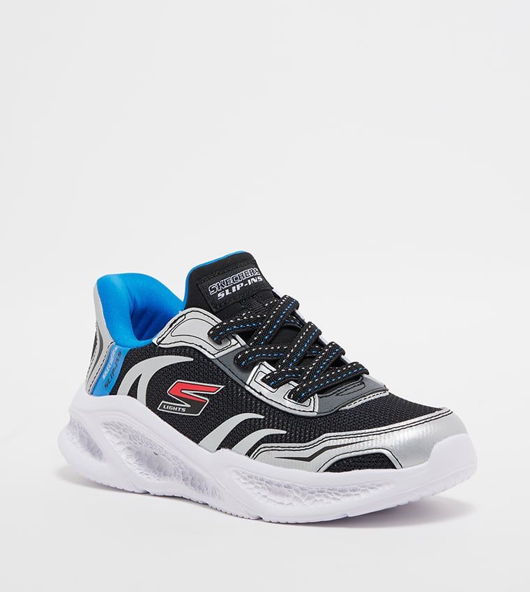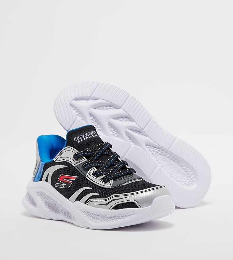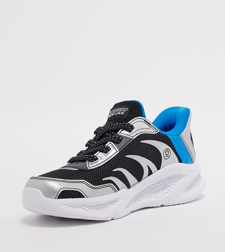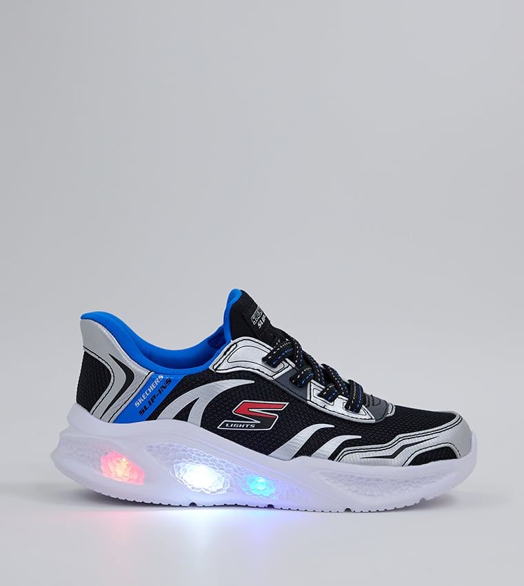 Giày thể thao Skech trẻ em Slip Ins Lights - Đen viền bạc