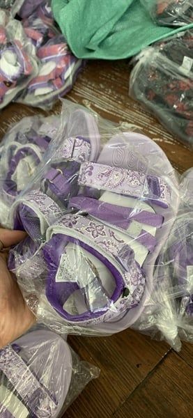 Sandal trẻ em quai dán thời trang- Tím viền hoa